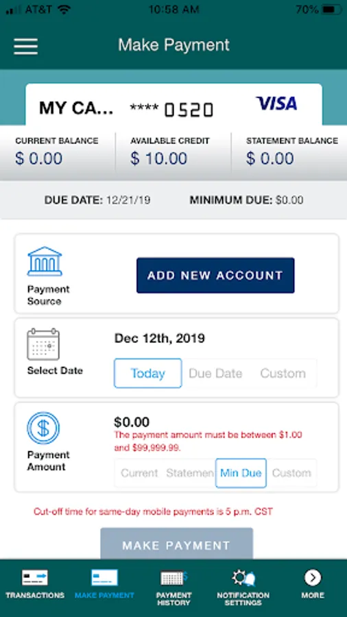 • Make a payment to your credit cards.