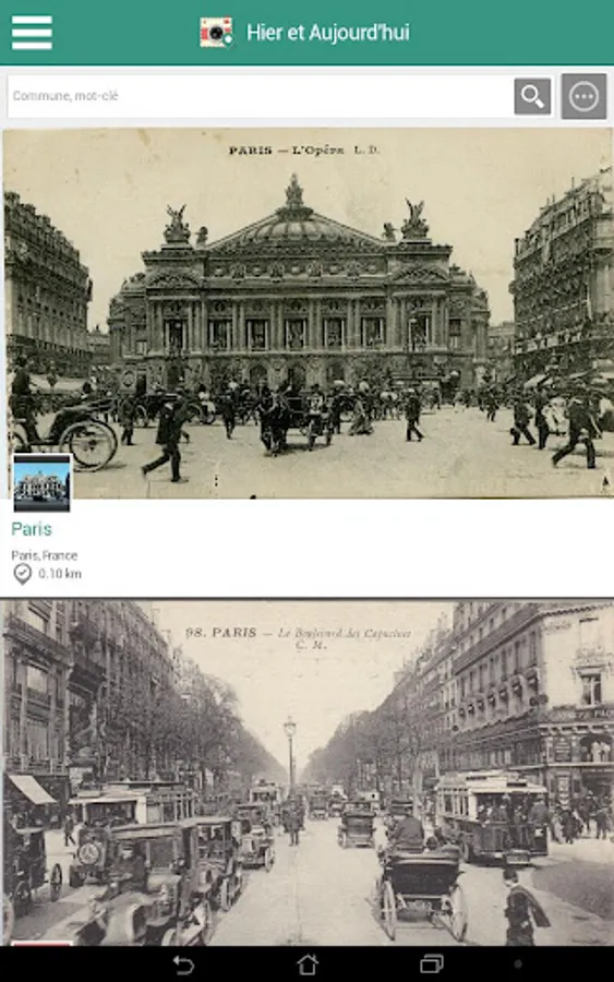 Participate with our new mobile app! If an old photo of the place where you are is available, take a picture of the same scene with your mobile or tablet. Try for yourself!