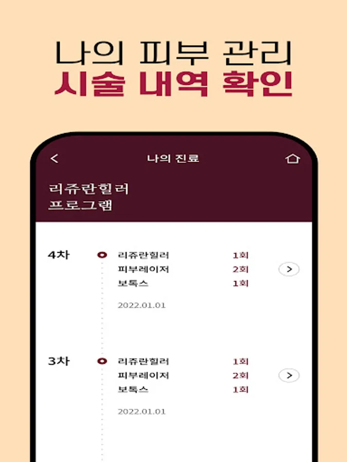 - 나의 시술 내역, 시술 후 주의사항, 경과 확인