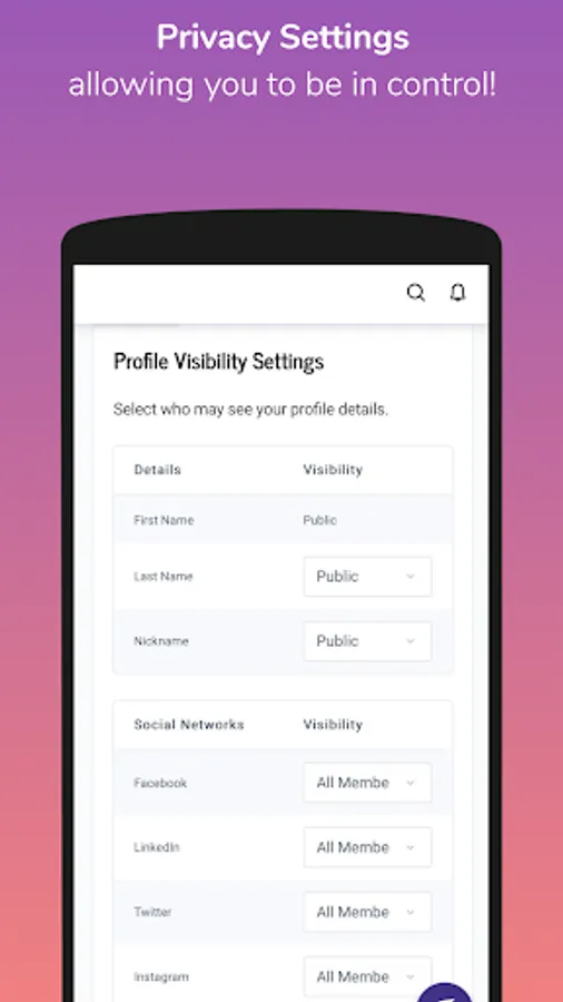 - Complete profile privacy control