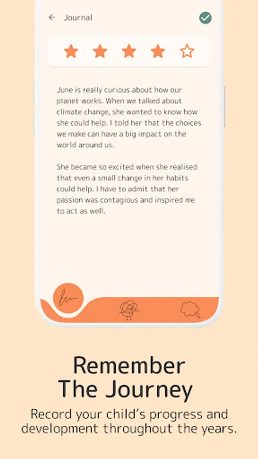 Gifted helps you record and keep track of your child's progress and development throughout the years. Cherish each question by writing down your remarks or just random thoughts if you want to. This will be a helpful reference for your child in the future.