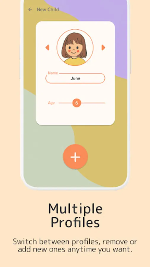 Start by creating your child's profile. You can create multiple profiles for all of your children, for relatives or even for your friends. You can switch between those profiles and remove or add new ones anytime you want.