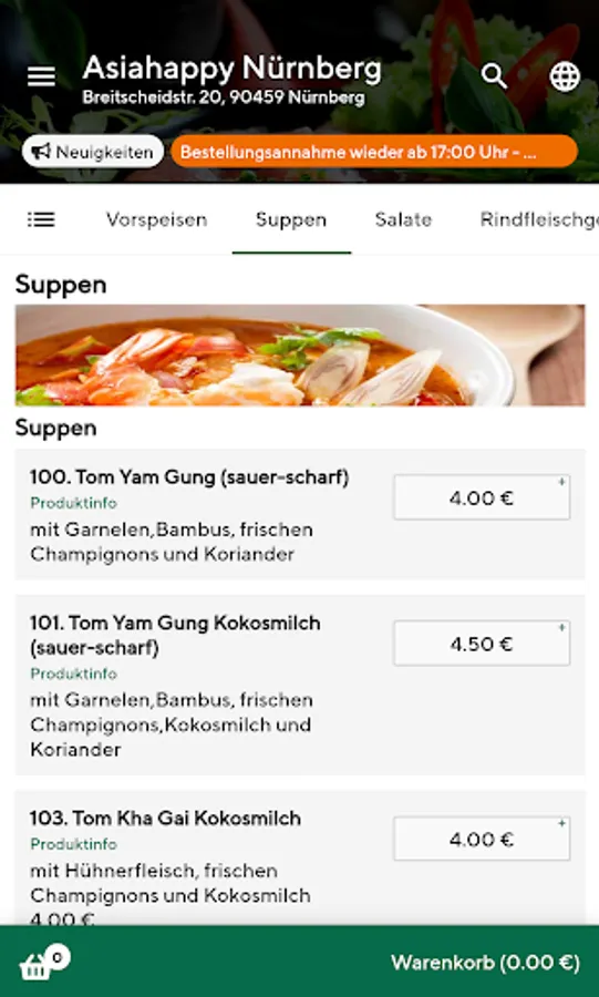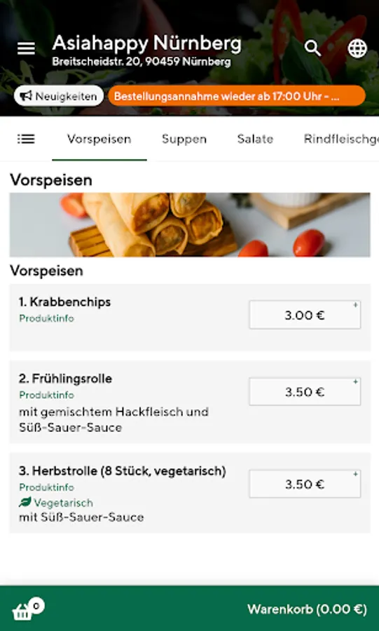 You will be convinced that the dishes, always prepared from fresh food, are easily digestible and taste "healthy". By the way: The skill of taming chopsticks is by no means a prerequisite for enjoying our specialties!