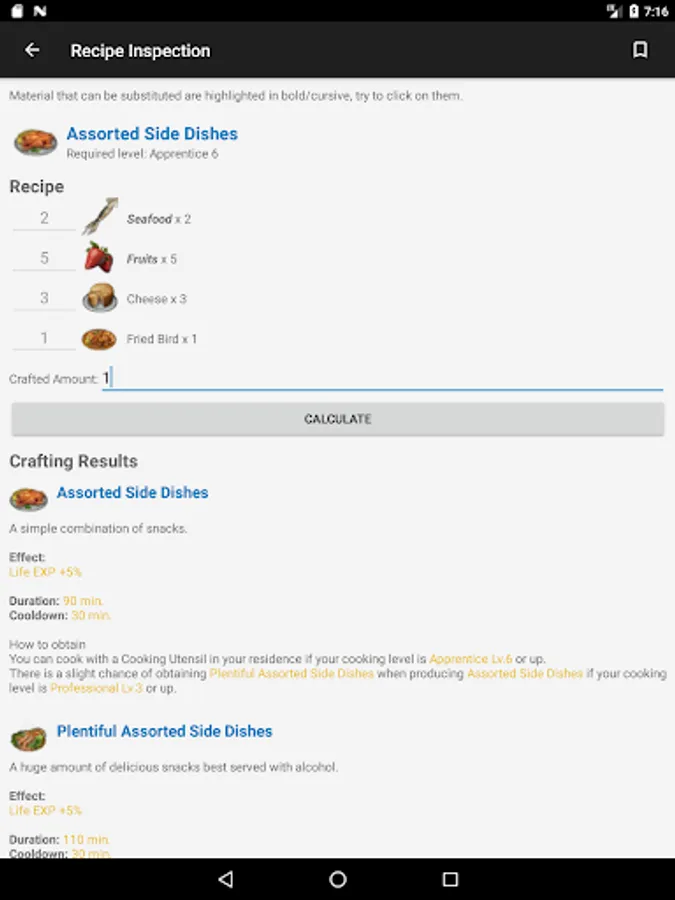 - Cooking, Alchemy, Processing & Workshop Database (recipe calculator, bookmarks)