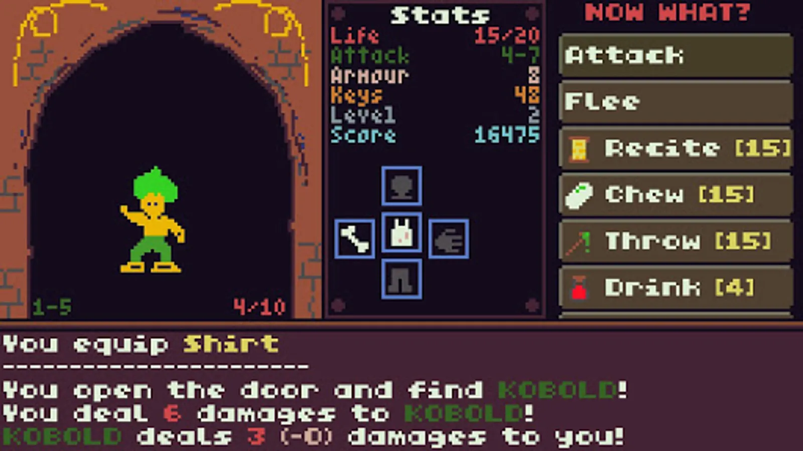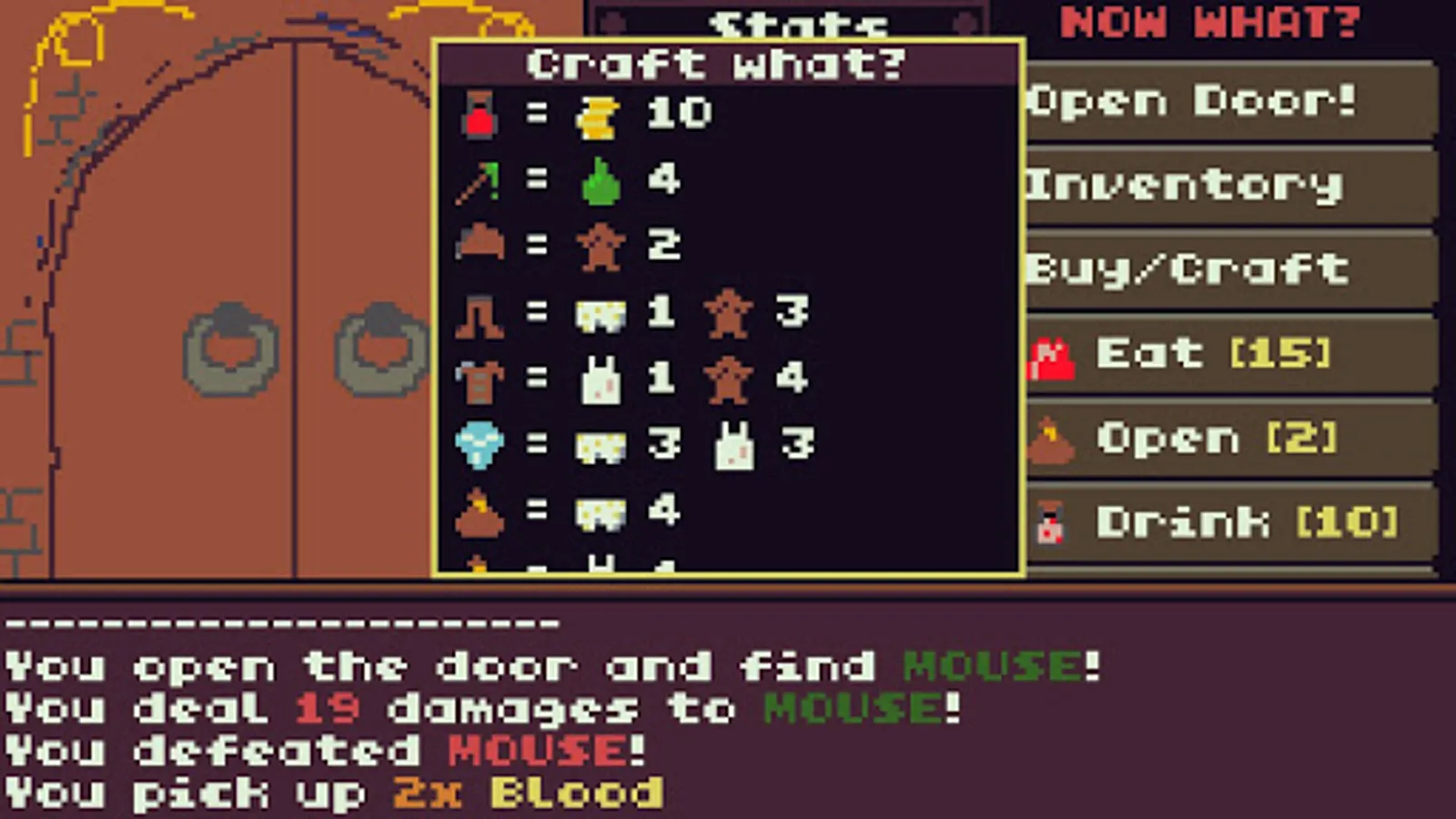 In this game you'll explore the Dungeon of Infinite Doors. You open a door and BAM, a monster will appear behind. If you can kill it, you get some sweet loot. You can get plenty of objects and you can also craft new ones!
