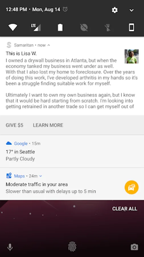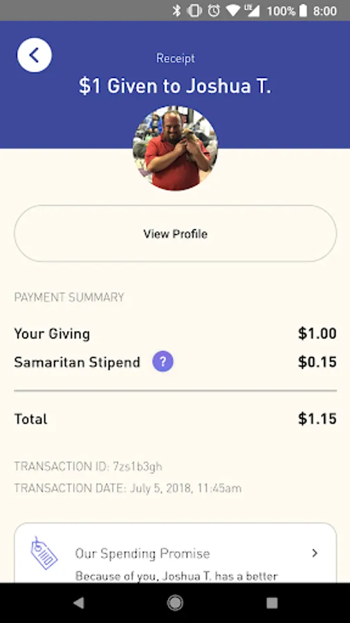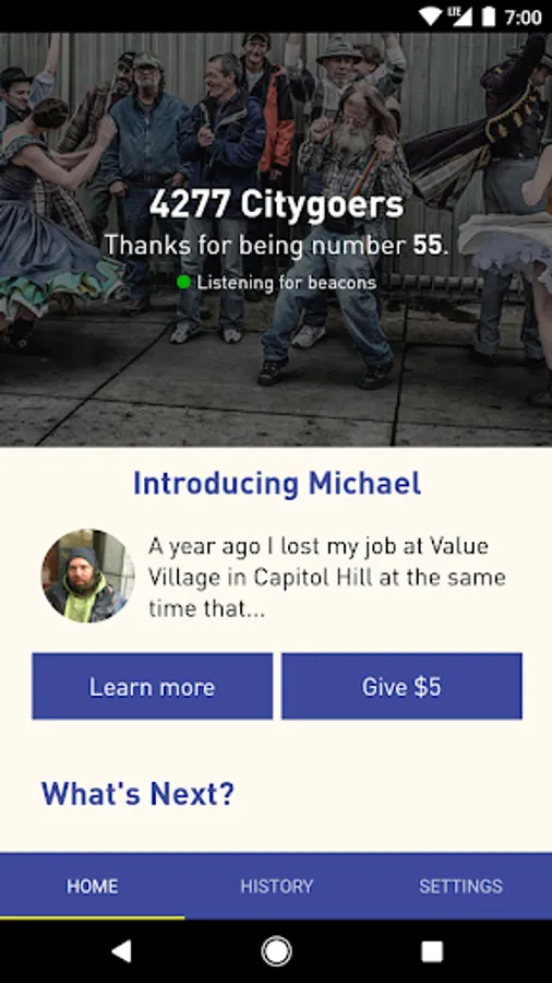 When you cross paths with a Samaritan Beacon Holder, a notification will appear on your phone. Tapping on the notification provides an opportunity to read about the person’s story or contribute $1 or more towards a needed good or service (such as food, fuel or clothing).
