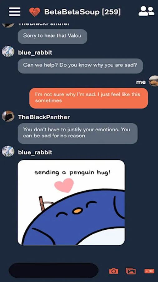 Each group chat consists of up to 20 teens, with 1 or 2 trained as facilitators. Try out new pronouns, get advice on coming out and dating, find support with friends and family issues or bullying, celebrate your accomplishments, and find encouragement from your friends in your group chat.