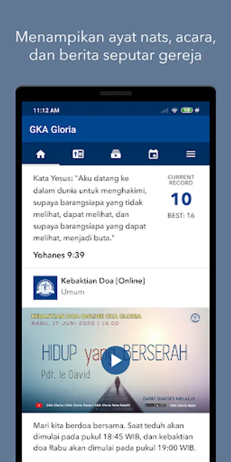 Melalui aplikasi ini, GKA Gloria memberikan informasi berita dan acara seputar gereja, sekaligus bahan untuk bersaat teduh. Anda akan selalu up-to-date dengan apa yang Tuhan lakukan di GKA Gloria.