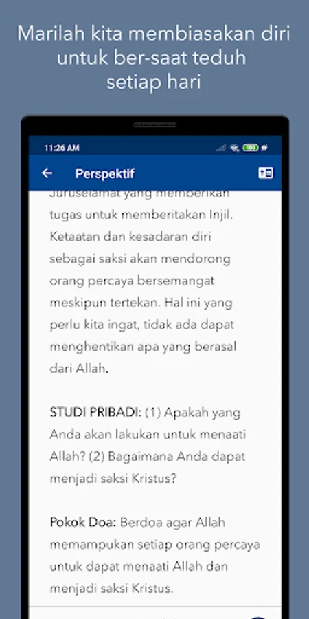 * Renungan Saat Teduh: setiap harinya, GKA Gloria menyediakan bahan renungan Perspektif sebagai salah satu fasilitas untuk pengguna dalam ber-saat teduh