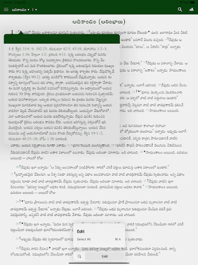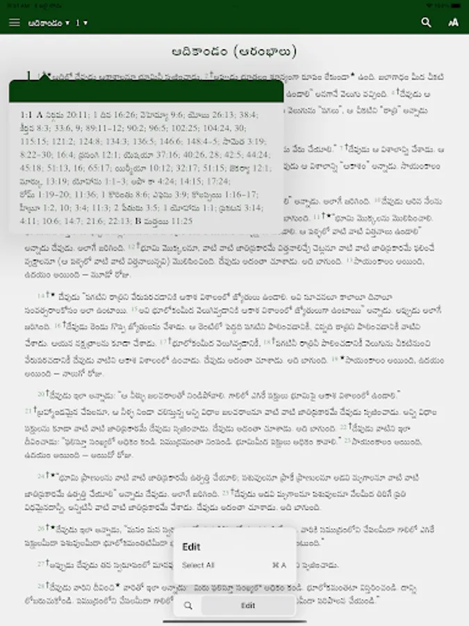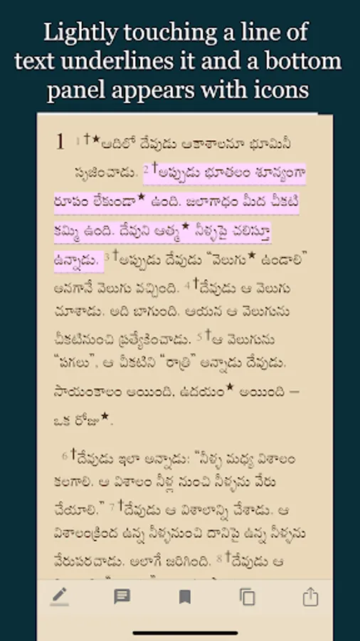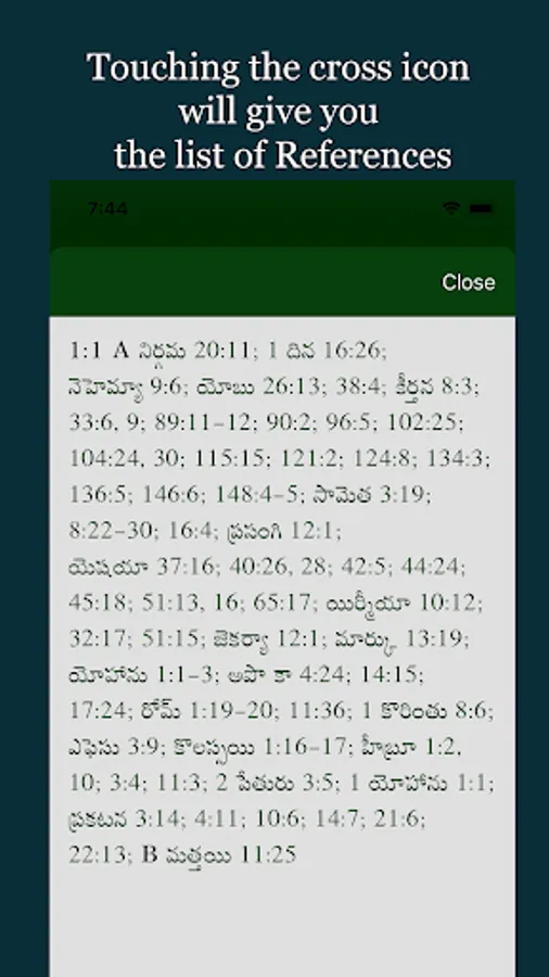 దాదాపుగ అన్ని ముఖ్య వచనాలలో చిన్న తెరచిన పుస్తకం గుర్తులో వ్యాఖ్యానం ఇచ్చాం. దానిపైన నొక్కితే ఆ వచనానికి సంబంధించిన వివరణ వస్తుంది. అదే విధంగా రిఫరెన్స్ ల నిమిత్తము పుస్తకాల సముదాయంతో నిండిన గుర్తును నొక్కితే దానికి సంబంధించిన రిఫరెన్స్ లు అన్నీ వస్తాయి.