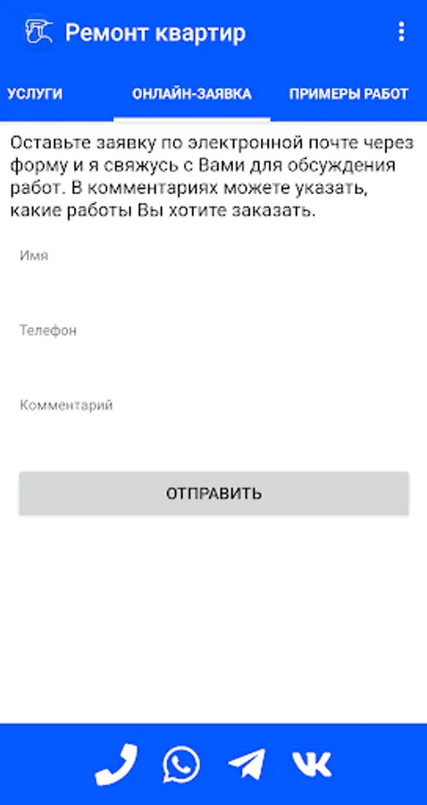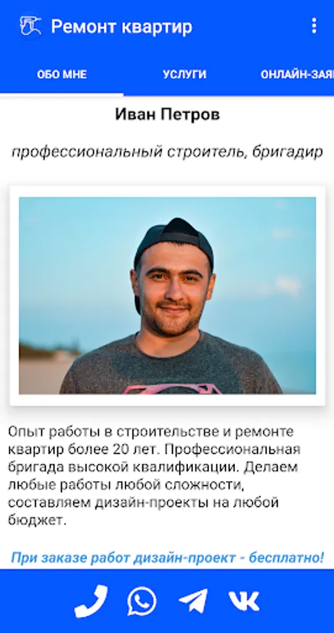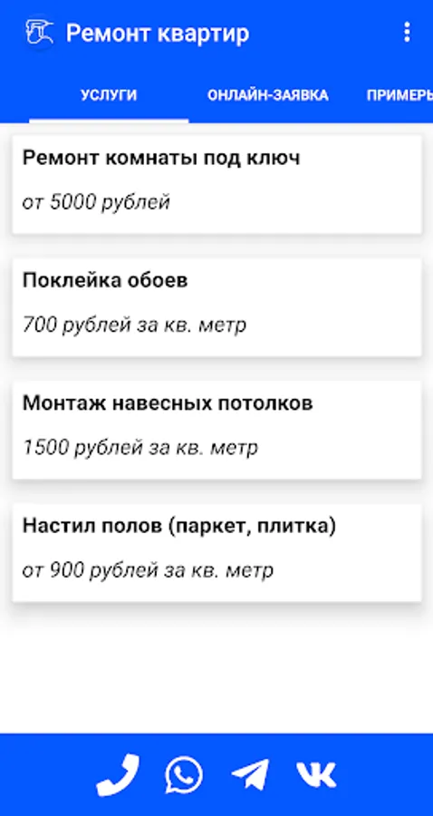 This appendix demonstrates what functionality can be developed for an apartment renovator using the GiveMeApp creation service. Want the same app? Go to the GiveMeApp service and create your application using a convenient constructor for free!