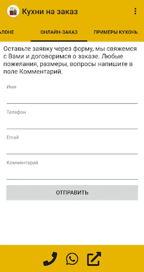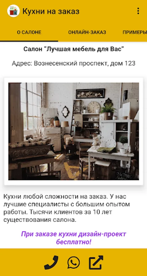 This appendix demonstrates what functionality can be developed for a custom kitchen seller using the GiveMeApp creation service. Want the same app? Go to the GiveMeApp service and create your application using a convenient constructor for free!