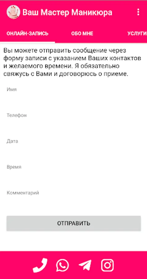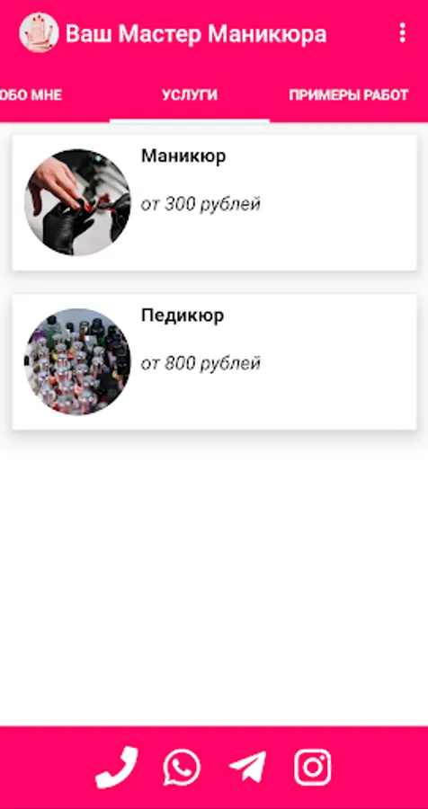 This appendix demonstrates what functionality can be developed for the manicure master using the GiveMeApp application creation service. Want the same app? Go to the GiveMeApp service and create your application using a convenient constructor for free!