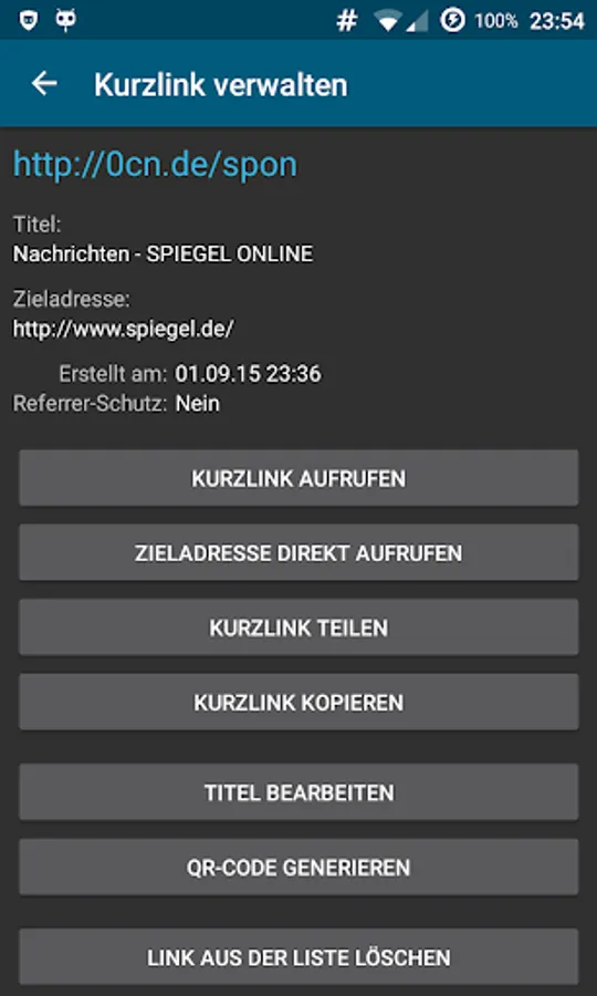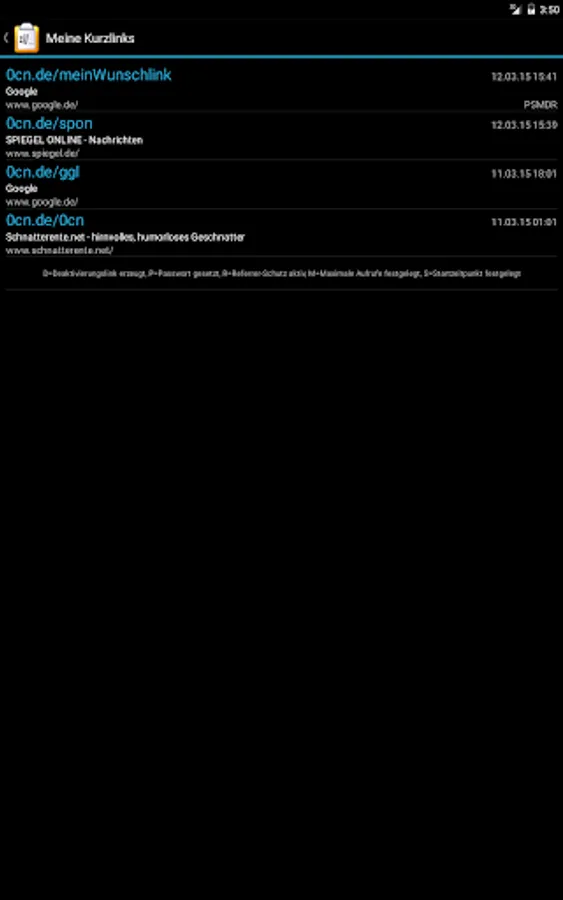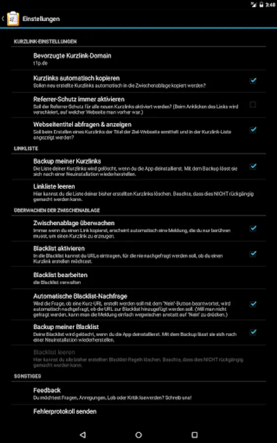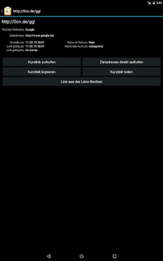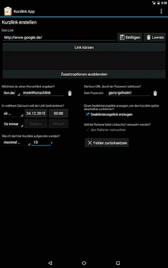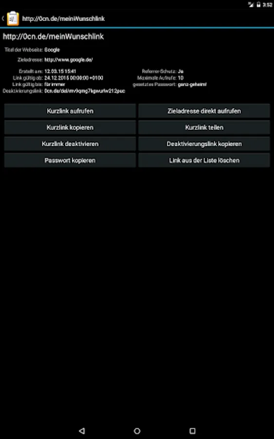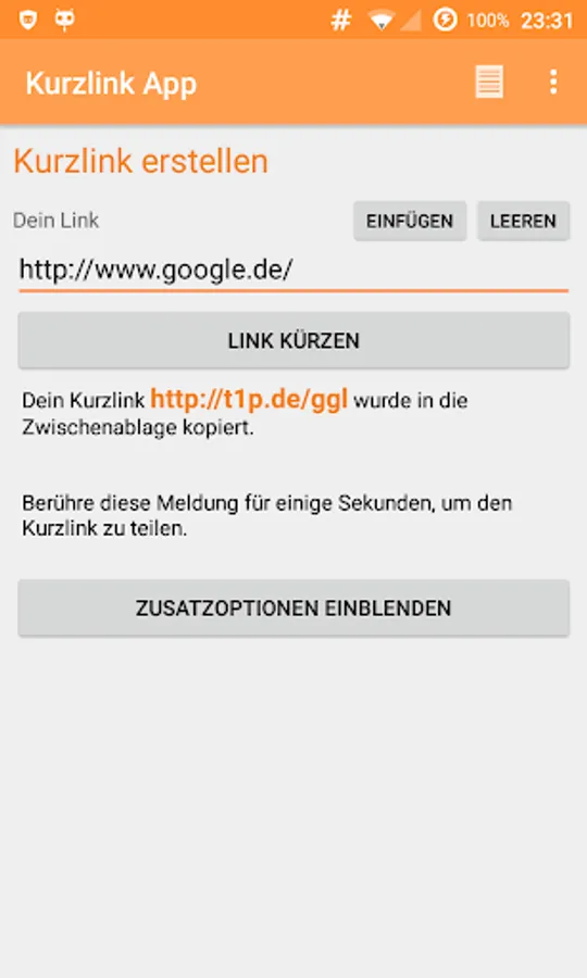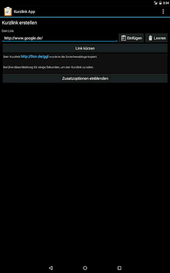 In addition, the app offers you the opportunity to quickly share created short links with other apps - for example, to send them via SMS or e-mail.