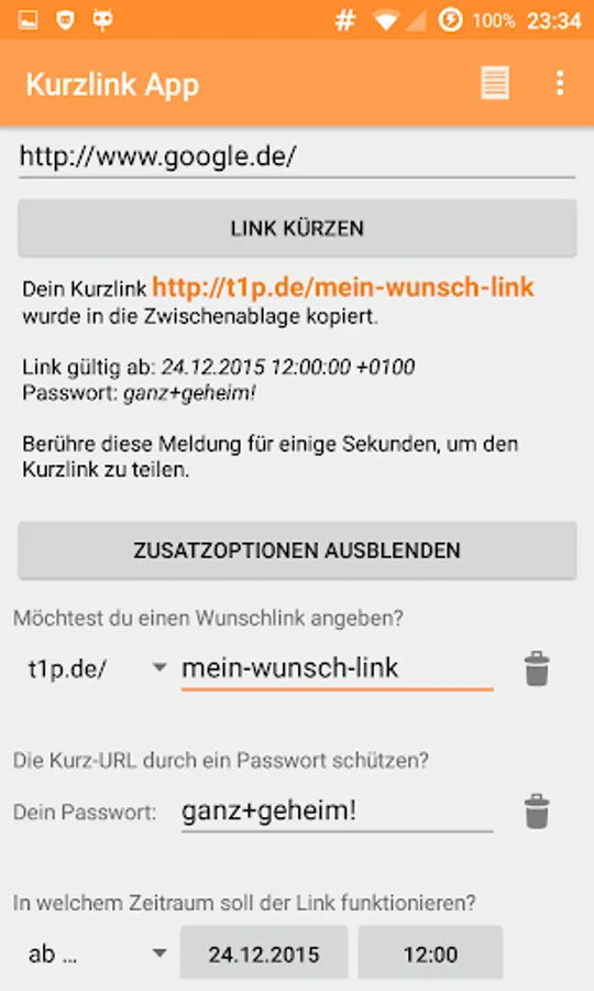 Further information about the app and the short link service can be found in the FAQ on http://kurzelinks.de
