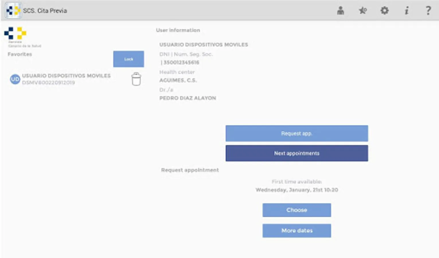 The application requires no registration but it is necessary to have an Individual Health Card from Servicio Canario de la Salud.