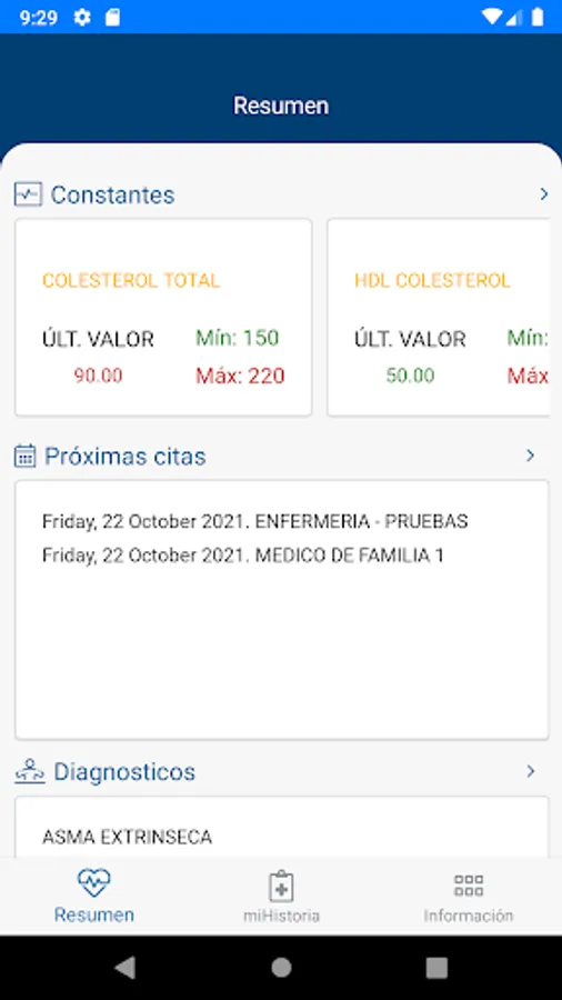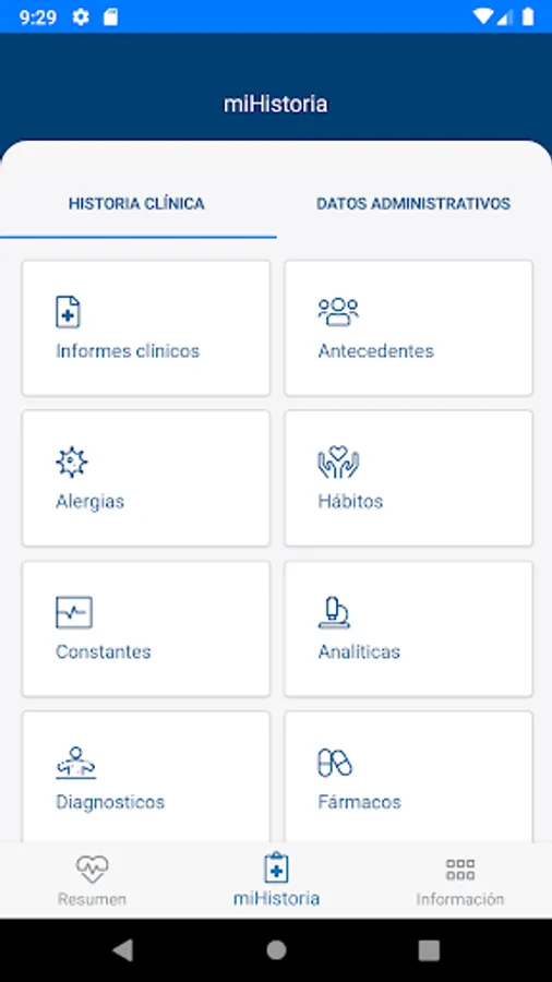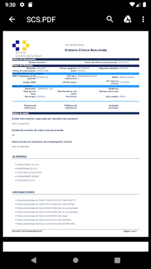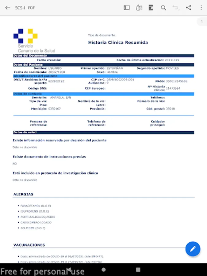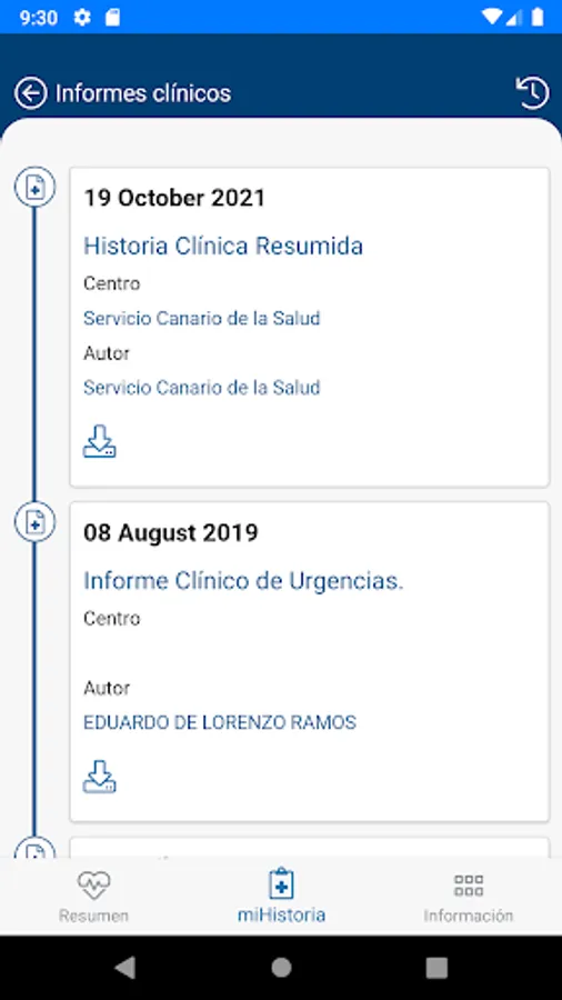App access to digital services of the health history of the Canary Islands Health Service. Remember your next appointments and obtain the identification, clinical data (antecedents, allergies, habits, constants, diagnoses, vaccines) and reports (of attention