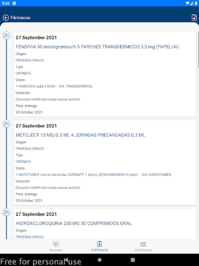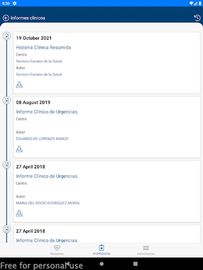 Reports obtained from the user's medical history in Primary Care and Specialized Care: clinical reports, hospital discharge, nursing care, emergencies, consultations, diagnostic tests and others.