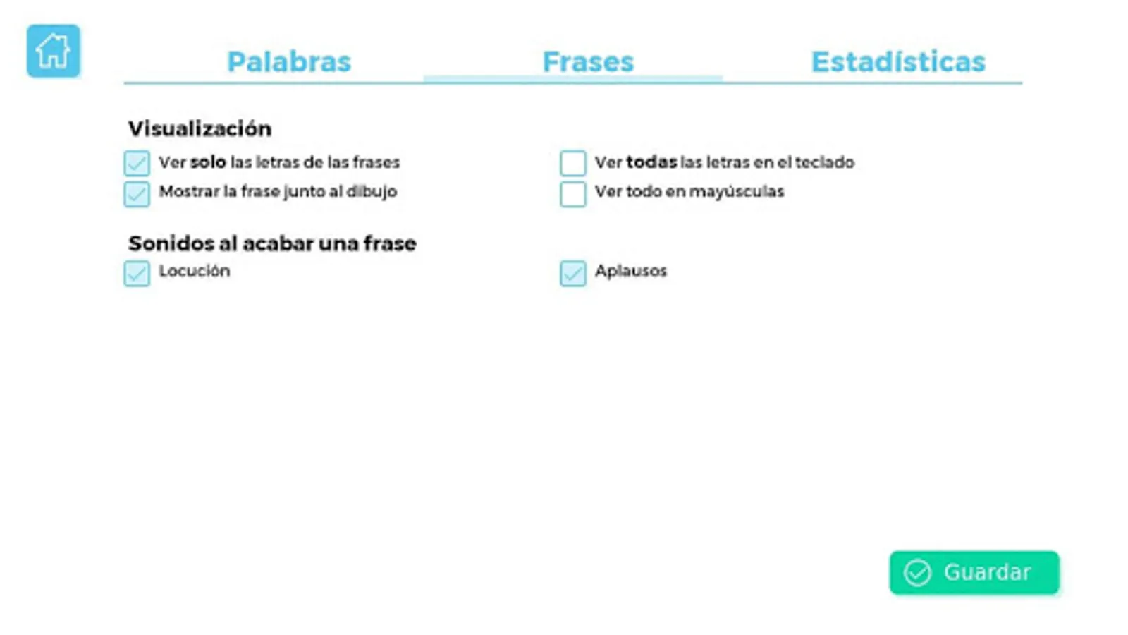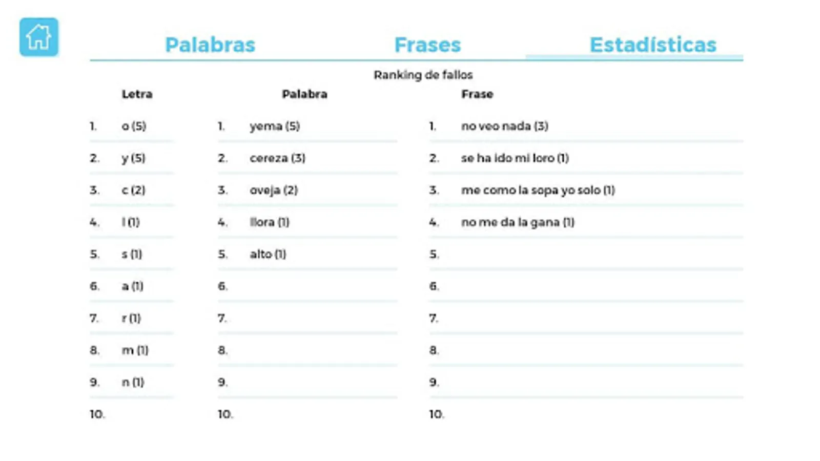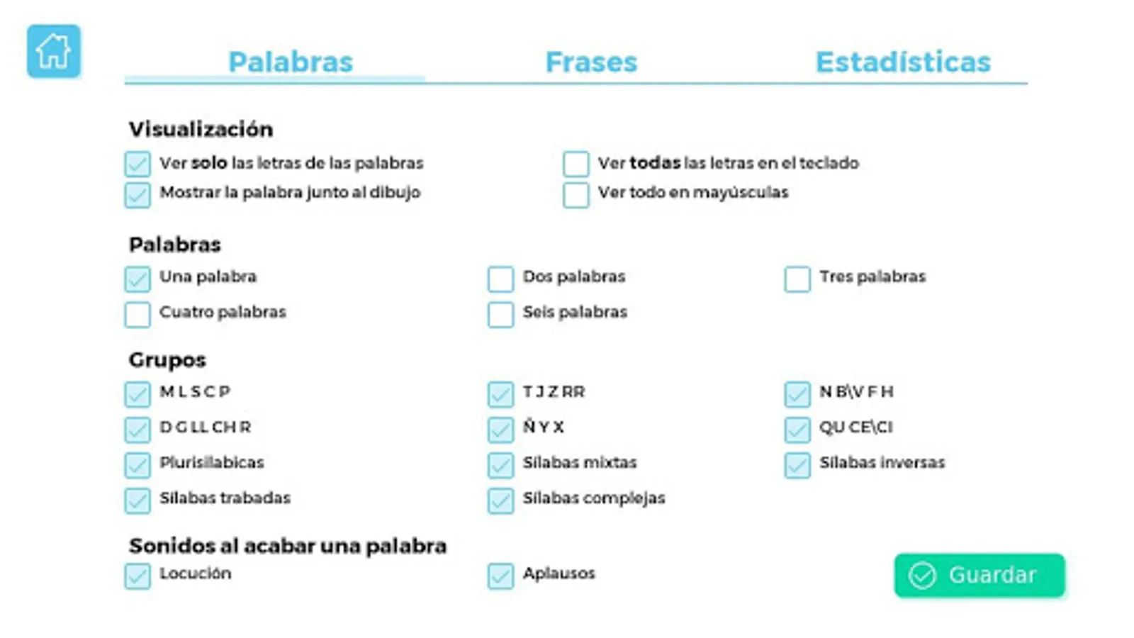 Parents or therapists have a powerful control panel from which you can define the operating modes, groups of words that appear, positive reinforcement at the end of a word or phrase, and statistics of the most common mistakes the child.