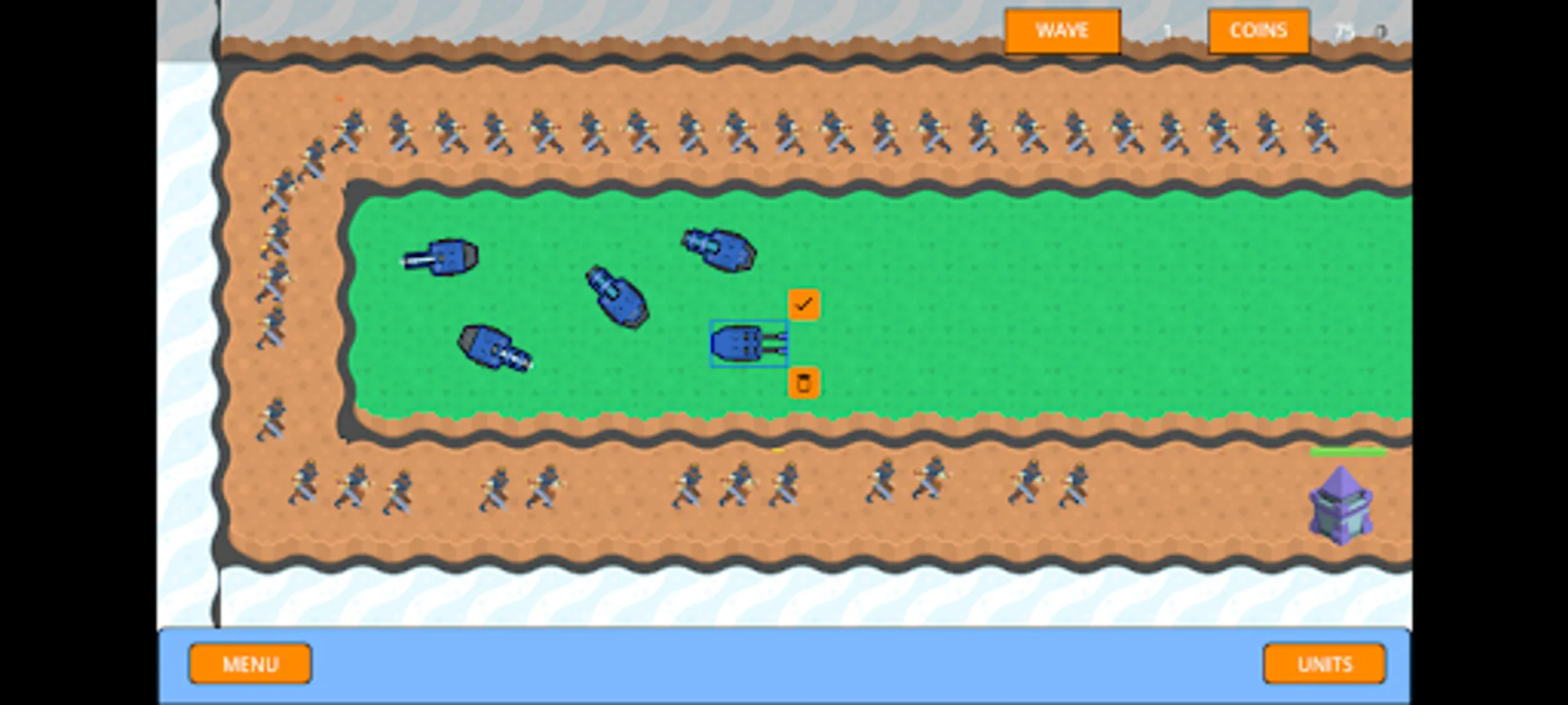 Spent resources. Install units. Test your skills and develop strategies. Develop an awesome fortress. Save your base from the enemies.