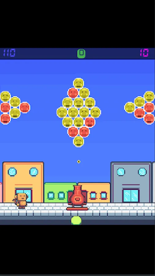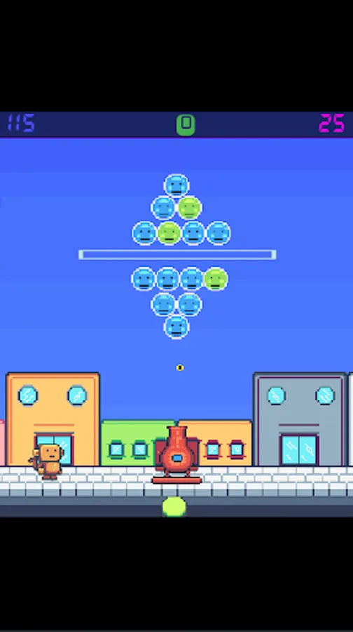 On each level there are three markers at the top of the screen. The one in the upper left corner has the function of marking how much time is left for the end of the level. The one in the middle registers the score and the one on the right shows how much time is left for the bubbles to change color.