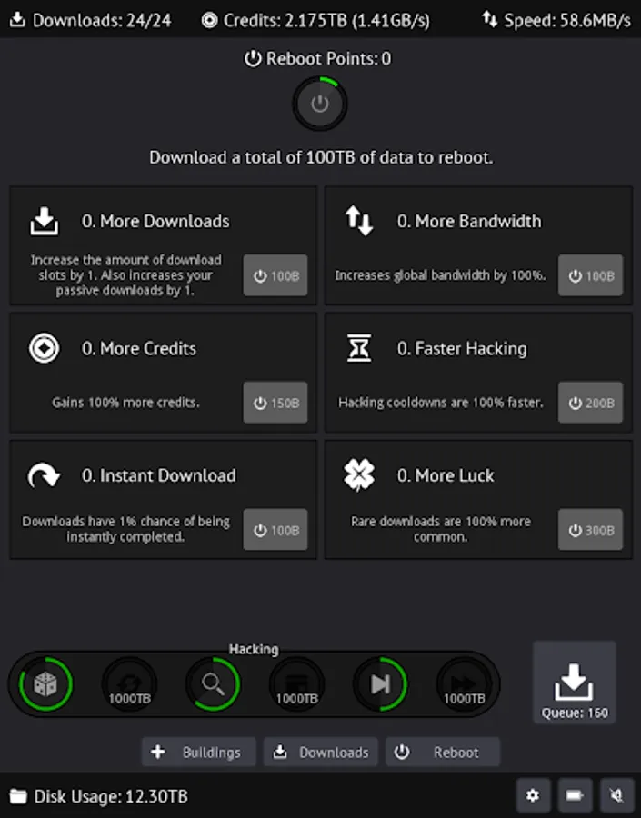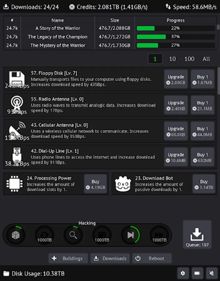 Buy buildings, upgrade, use hacks to improve your progress and get even faster connection speed.