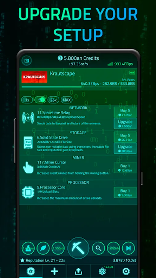 Upload real games, gain reputation, research amazing technologies and explore sci-fi themed components while watching progress bars fill faster with each upgrade!