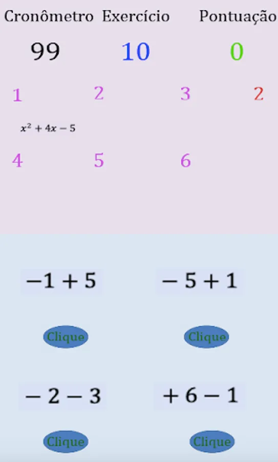 Simples jogo de fatoração. Screenshots