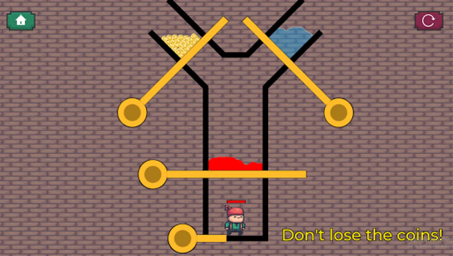 Move the Pins and Pipes to gather coins the fastest possible and don't let the player die!