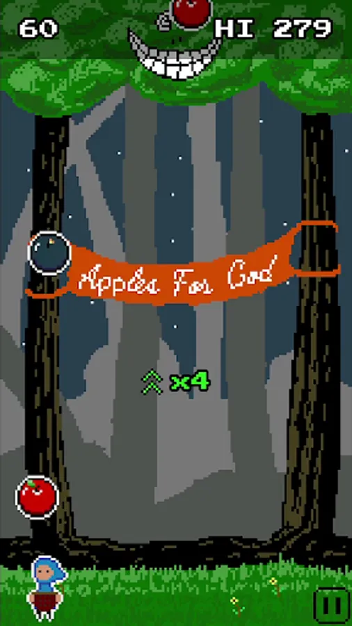 Catch the apples, avoid the bombs.
