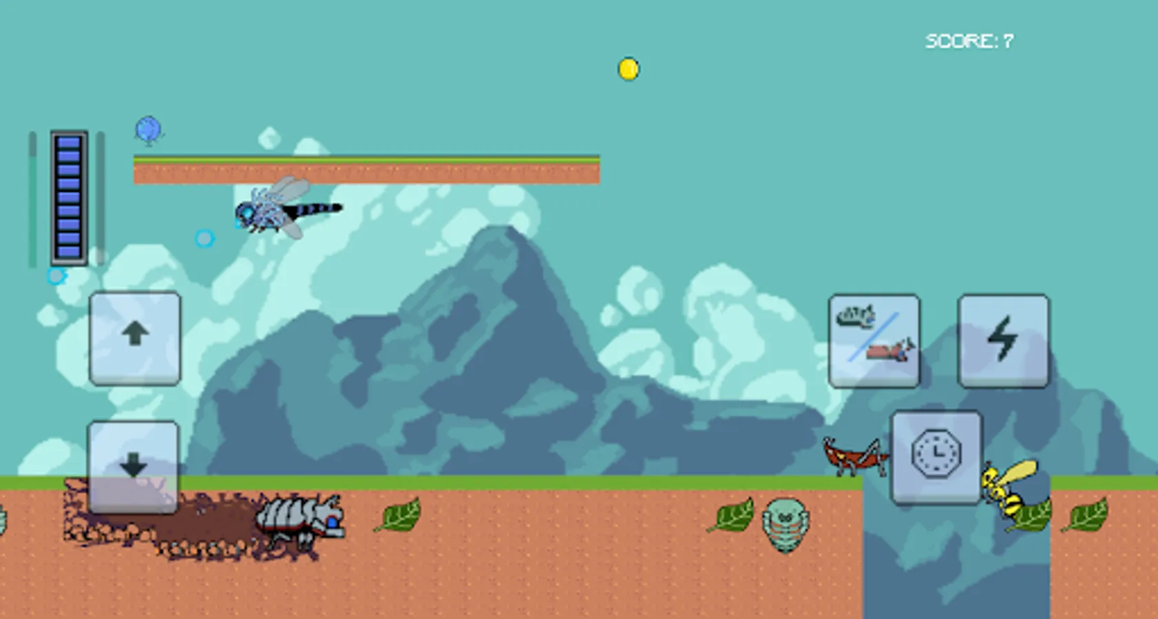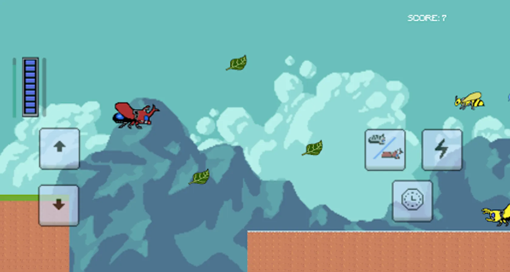 Control a beetle with 2 modes (flying mode and cocoon mode) to get the high score