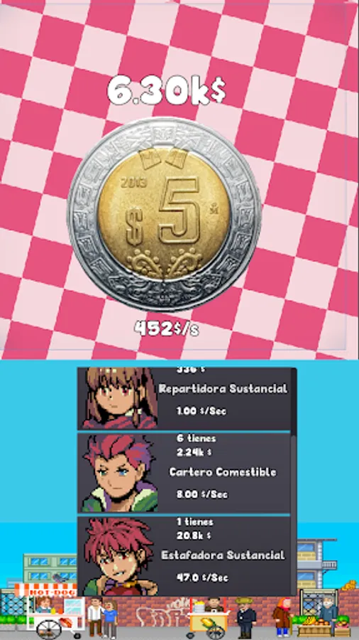 Empiezas con solo cinco pesos y contratas nuevos ayudantes que te ayudan a obtener una fortuna !