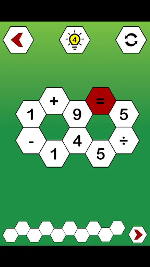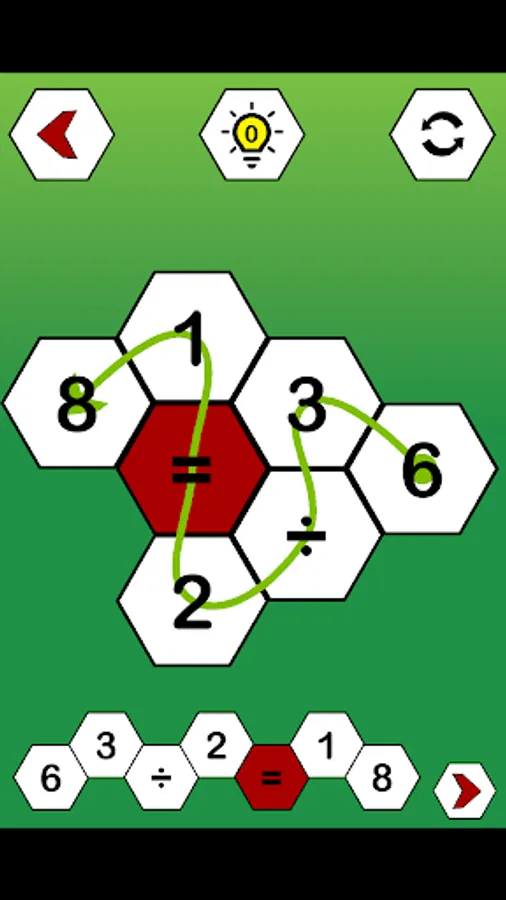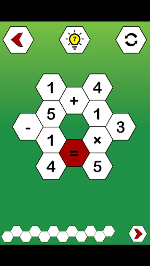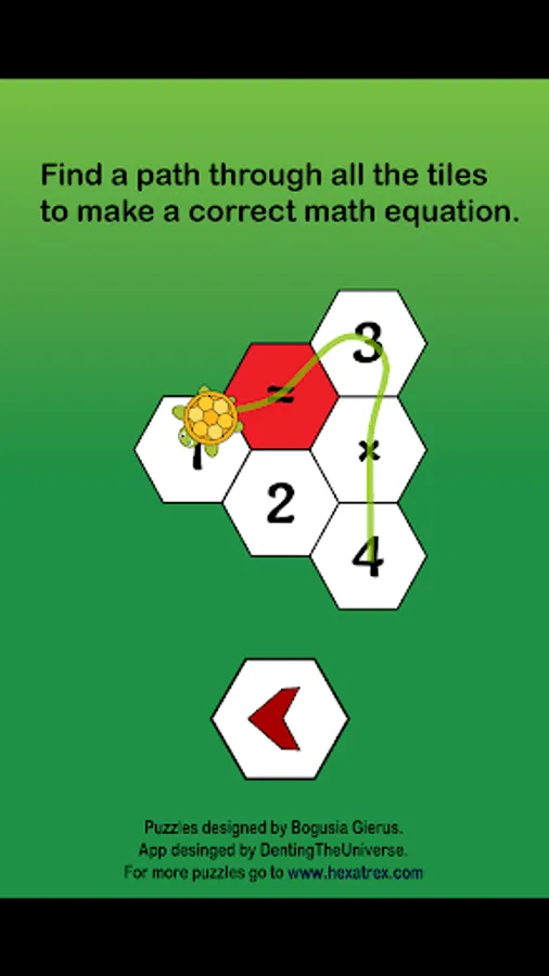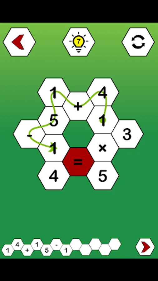 The object of the Hexa-Trex puzzle is to find a path through all the tiles to make a correct math equation.