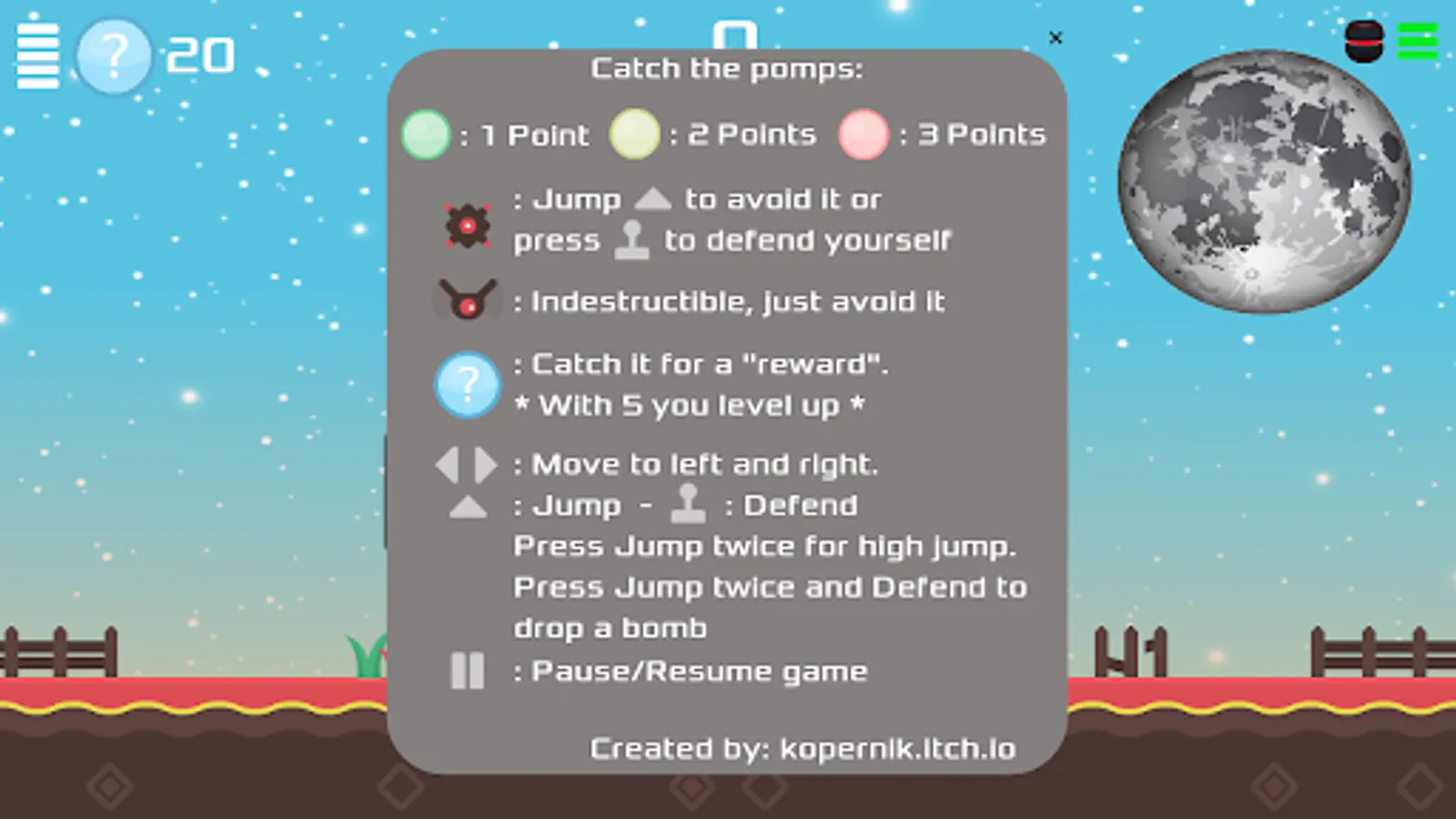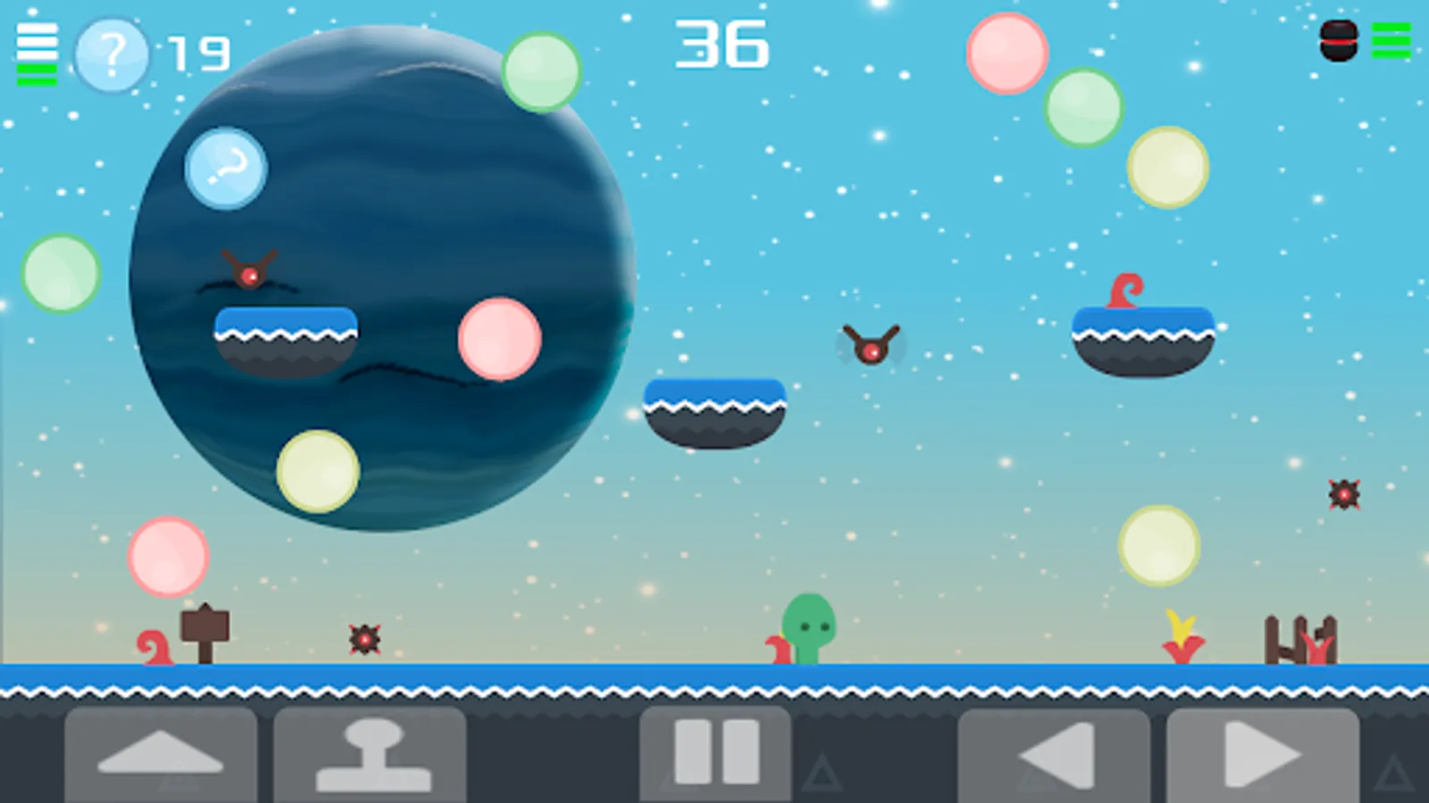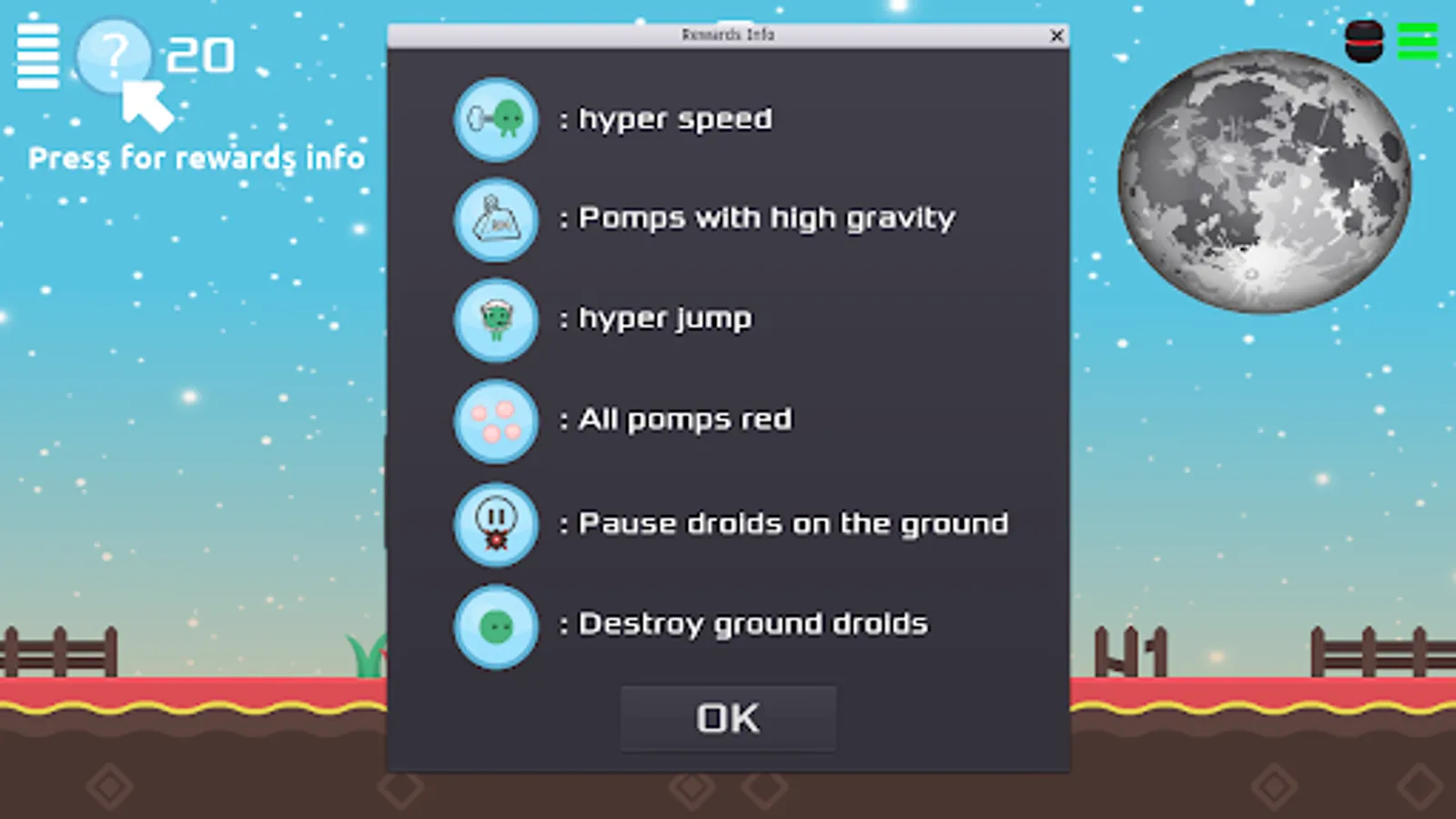 Save yourself from the droids (jump, defend yourself or if you are in trouble, drop a bomb).
