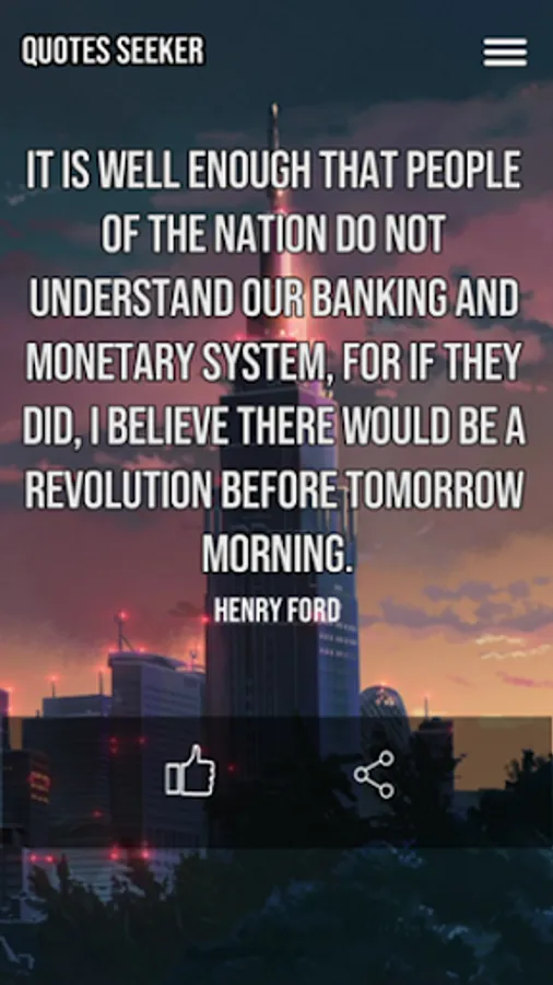 Thousands of quotes from hundreds of authors with over one hundred categories. Authors include Mark Twain, Henry Ford, Robert Frost, Andrew Carnegie, C.S. Lewis, Confucius, Eleanor Roosevelt, Ralph Waldo Emerson, Aristotle, Henry David Thoreau, Bob Hope, T.S. Elliot, Emily Dickinson, William Shakespeare, Sting, Harrison Ford, Muhammad Ali, Oprah Winfrey, and many more. Keep track of all your favorite quotes using the 'like' feature or share with your friends using the share feature.