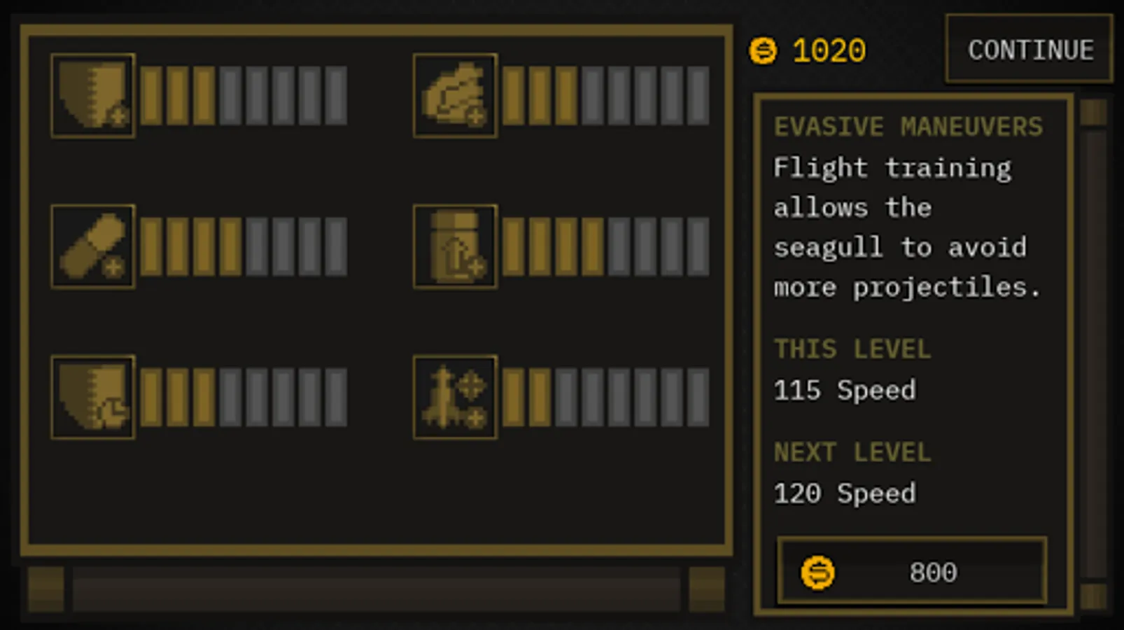 Seagull Team Six places you in the shoes (claws?) of Agent Seagull, America's top secret agent. You'll have to combat waves of enemy soldiers with... poop. Luckily, you have the support of some of the country's best scientists, willing to help you become faster, stronger and, well, able to make a lot more poop. For a price, you can become a super seagull, but it'll take courage and bravado to get there. Do you have what it takes?
