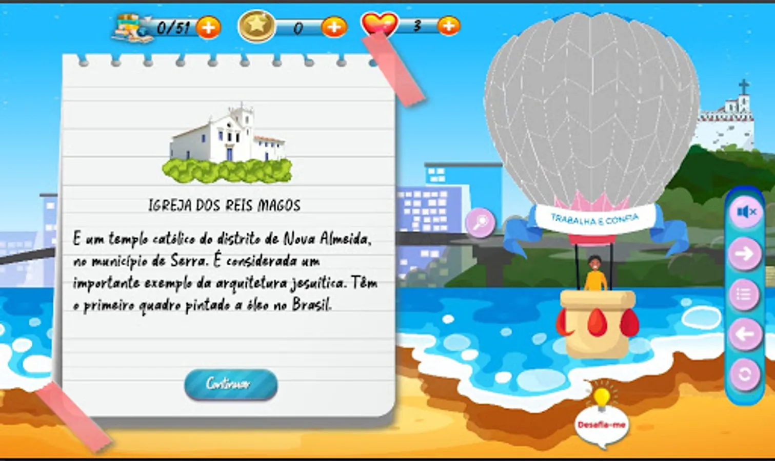 Território Capixaba is an educational game to support regional culture with support from Brazilian institutions. Mainly aimed at children and all those who want to learn about our history in a didactic way.
