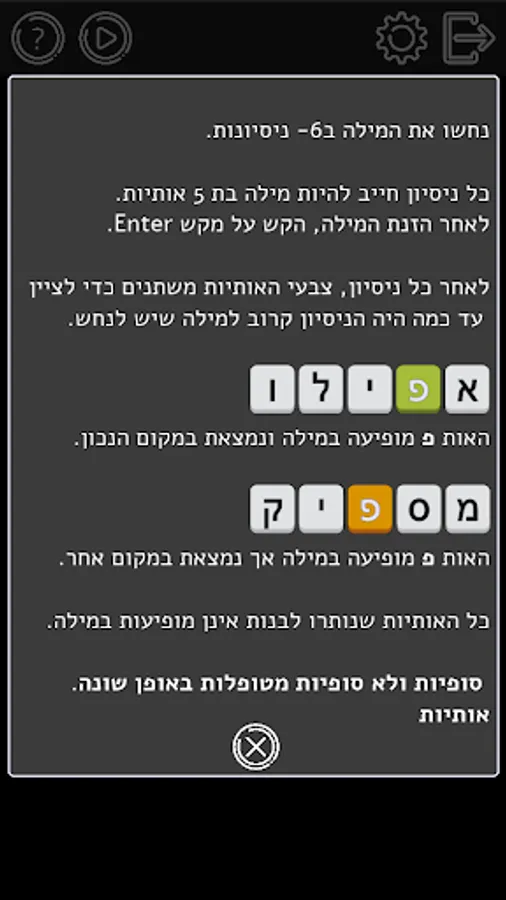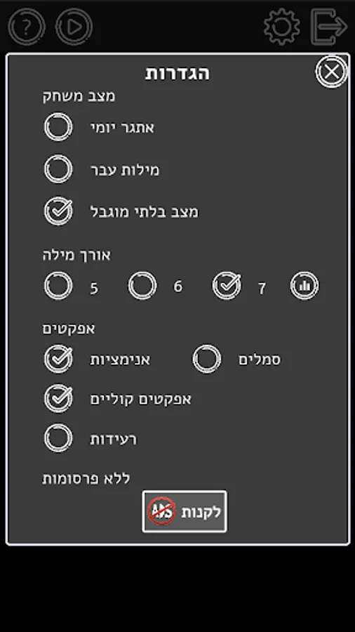 - Unlimited mode with 5, 6 and 7 character words.