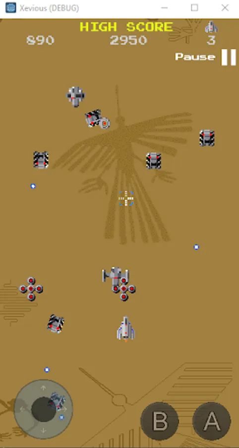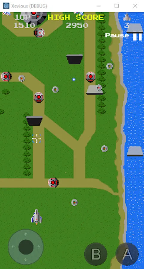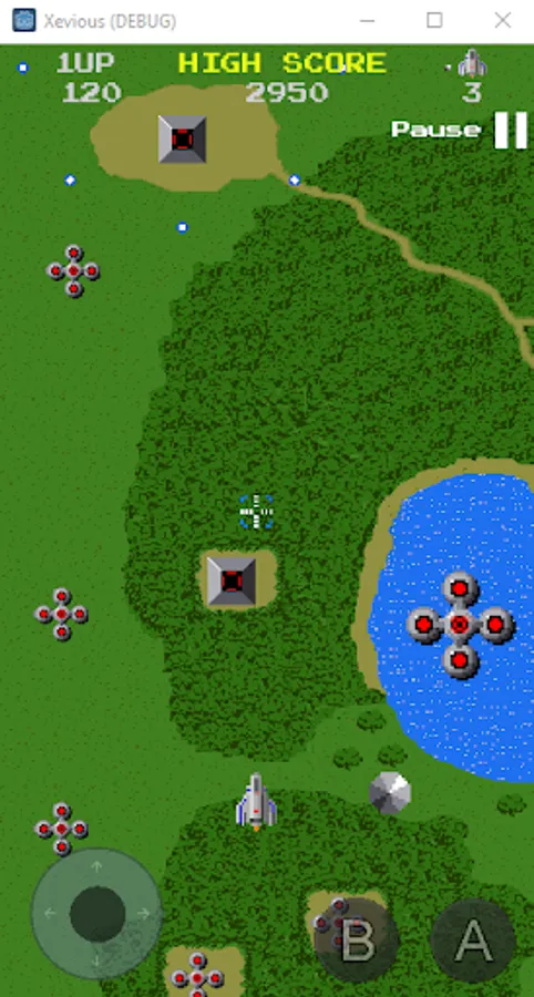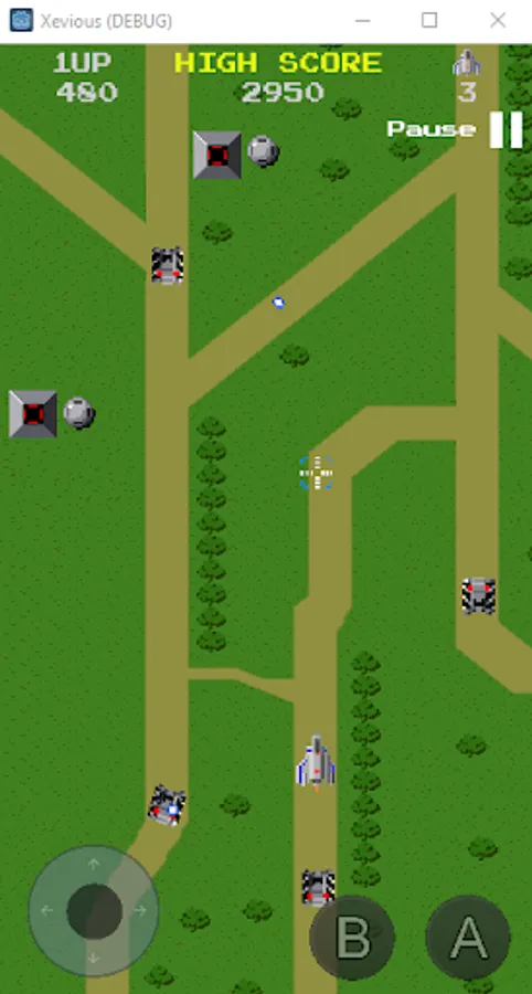 Xevious is a vertically scrolling shooter. The player controls a flying attack craft, the Solvalou, to destroy the Xevious forces plotting to take over Earth. The Solvalou has two weapons: a zapper that fires projectiles at flying enemies and a blaster for bombing ground installations and vehicles. A reticle in front of the ship shows where bombs will land.