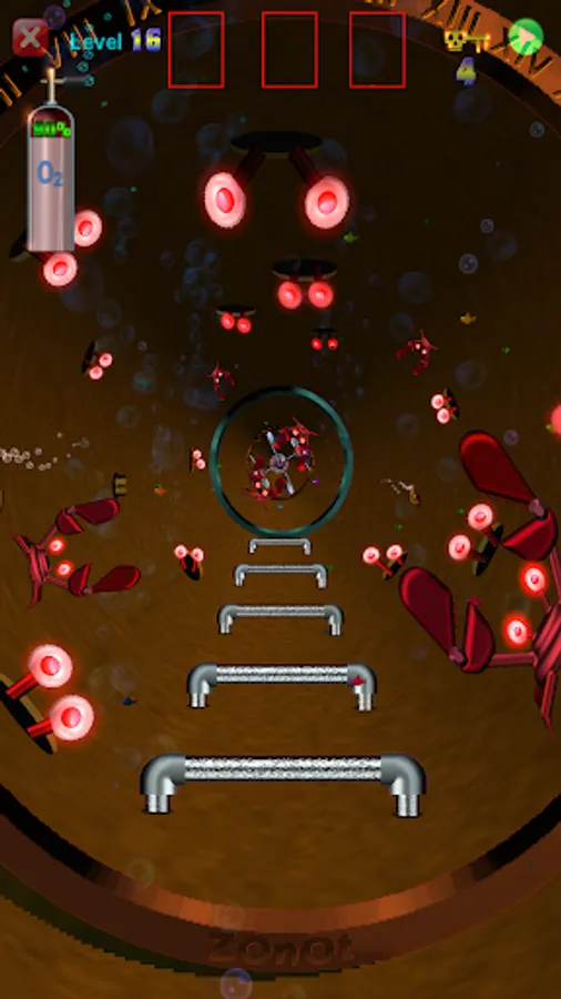 ZOnOt is a game consisting of an A.I. powered machine who entraps you in its under water cavern and challenges you to swim to escape before your oxygen depletes! While teasing you in its own created language, it challenges you with ever increasing gates of difficulty. You must unlock each one in order to reach the surface, but what awaits you once you're free??? So have fun with ZOnOt, an awesome free puzzle + arcade game for the whole family!