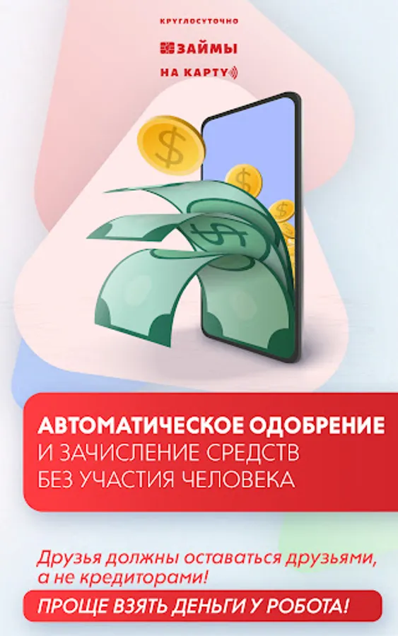 Loans to the card online💎- a lifesaver in a situation where money is needed urgently. Perhaps you need to quickly close a loan, pay for an apartment or repairs, but no credit organization can help you at the moment, since the bank cannot quickly check your documents and give you the right amount, and the likelihood of approval of such an application in banking structures extremely small. The application Loans to the card will help you apply for a loan online in 5 minutes and take money immediately after applying.