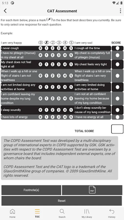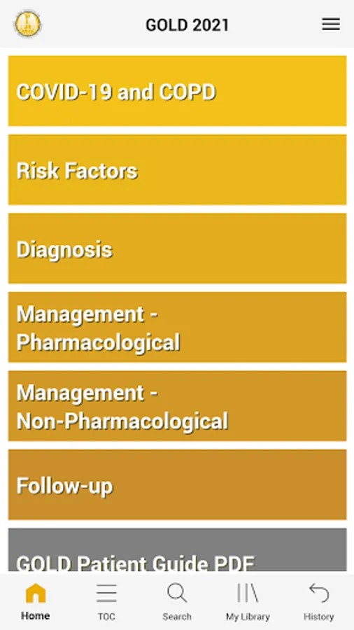 Access the Global Initiative for Chronic Obstructive Lung Disease (GOLD) 2021 Report at the point of care and use interactive tools such as the Refined ABCD Assessment tool, the mMRC Dyspnea Scale, the CAT Assessment, the COPD treatment algorithm and many more tools. The app allows users to bookmark important pages and add notes.