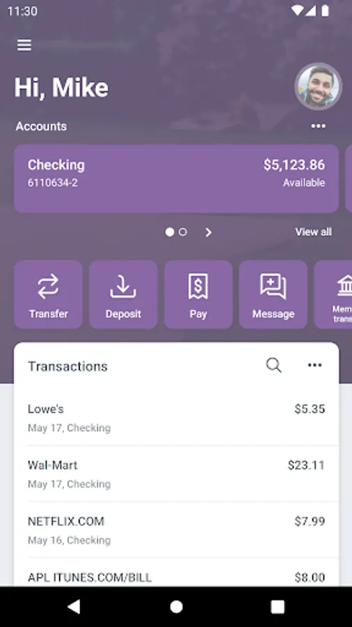 • Deposit checks in a snap by taking a picture of the front and back.