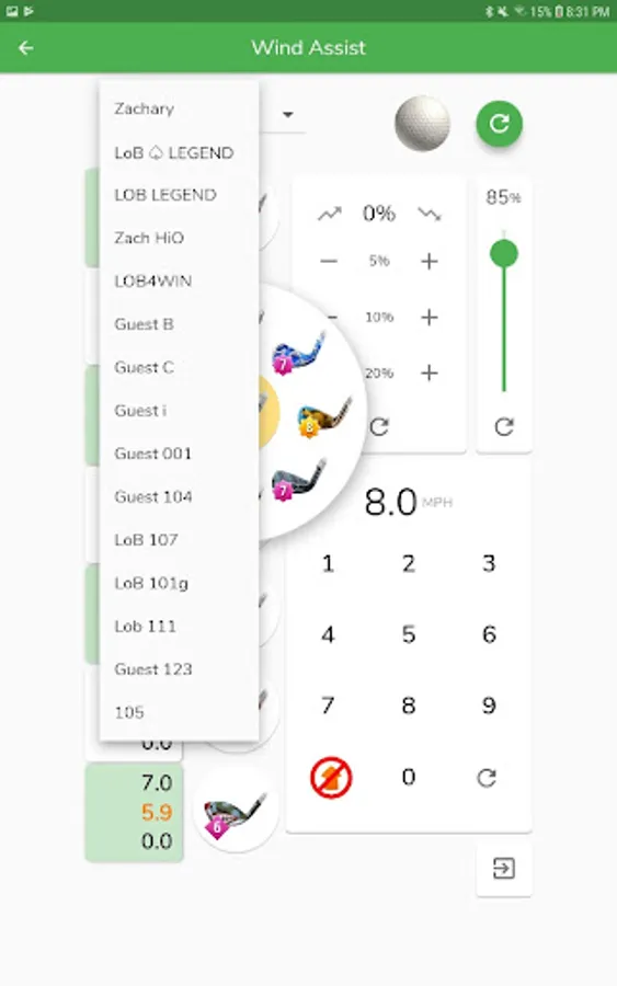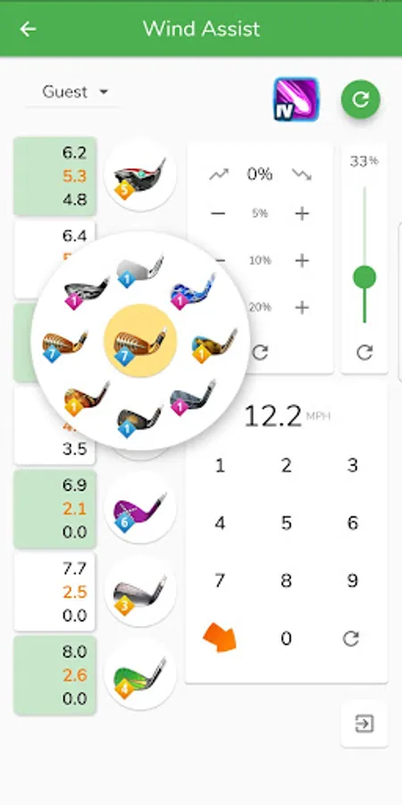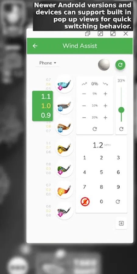 * Full Screen Wind Calculator which shows how many rings you need to adjust for all clubs more suitable for using on a 2nd device