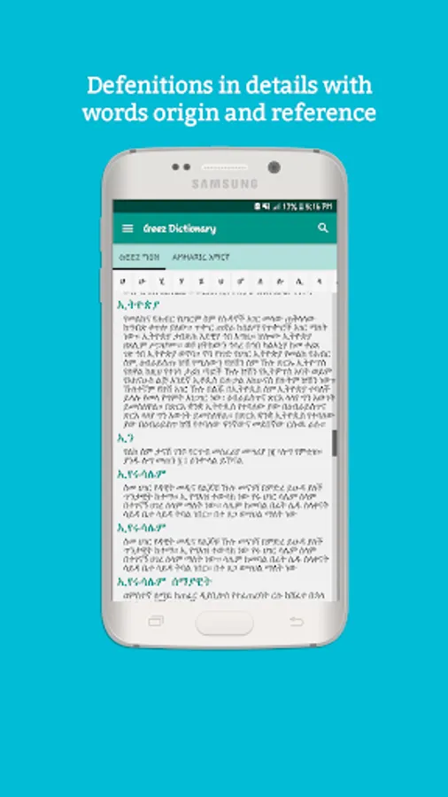 The offline Geez and Amharic dictionary application explains the meaning of Geez Words words!