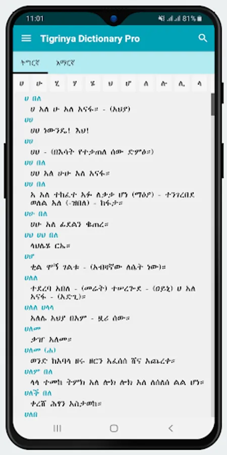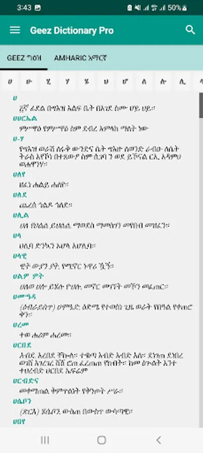 The offline Geez and Amharic dictionary application explains the meaning of Geez Words words!