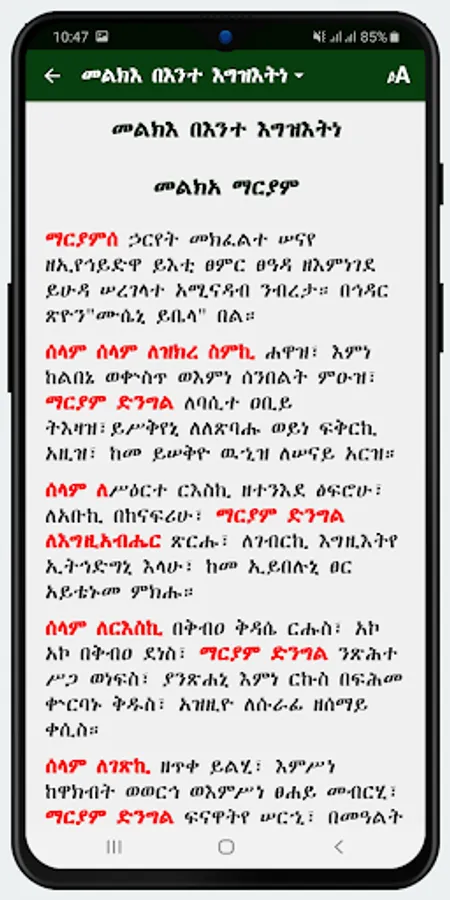 Prayers of the Saints is a book in the Ethiopian Orthodox Tewahedo Church that contains a prayer of thanksgiving for devotees who sing and pray during the daytime or during the holy rites. The book is prepared in English and Amharic and is intended for prayer use by parishioners. The poetic form of the hymn also helps us to participate in the church by simply reading the book with the priests while the chants are sung. For example, it also serves as a great resource for students to study or use at their own pace. We add more Saints Prayers regularly and you can easily find changes by regularly following our page.