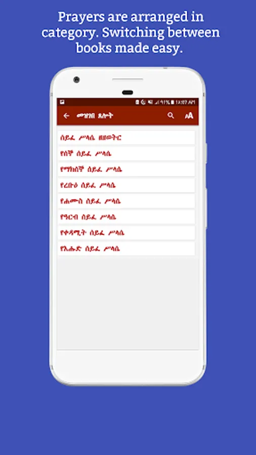 Mezgebe Tselot is the great Ethiopian Orthodox Tewahedo Church collection of prayer books and is available in a variety of languages including Amharic, Geez, Afan Oromo, Tigrinya, English and Arabic. It is the best and biggest common book of prayers for Christians. The application includes a collection of more than 100 Orthodox prayers in the daily prayers, the prayer of saints, Image of saints, Psalms, praises of saint Mary and Jesus, and more other prayers.
