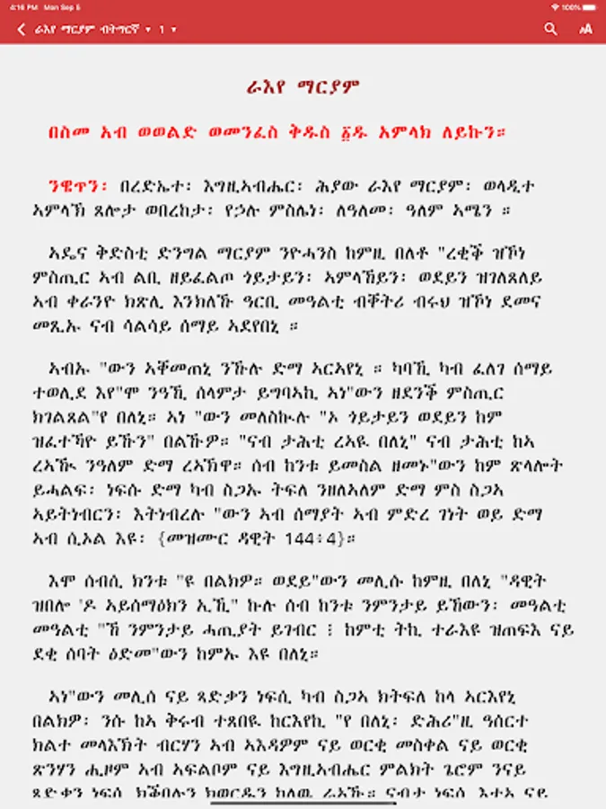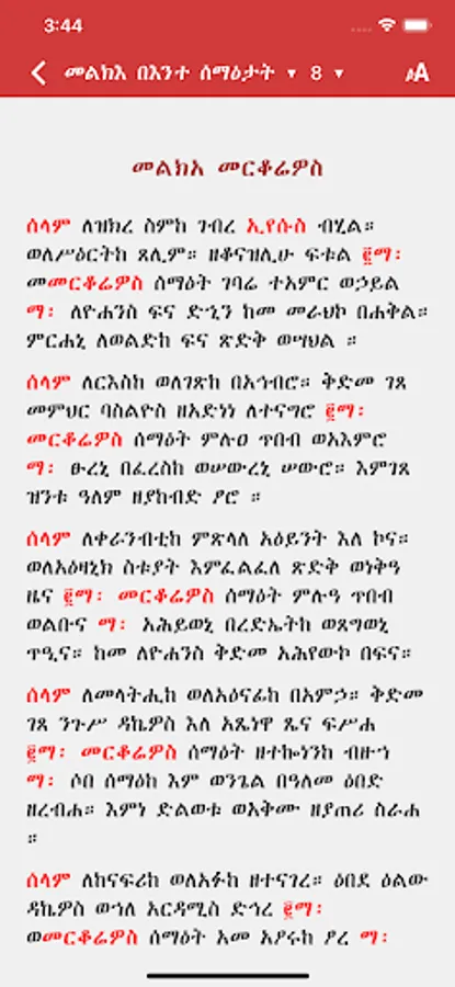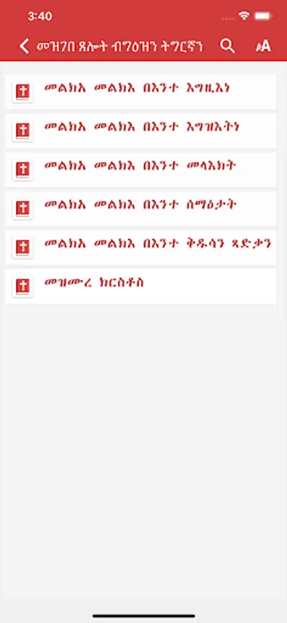 Mezgebe Tselot (መዝገበ ጸሎት) is the great Ethiopian Orthodox Tewahedo Church collection of prayer books and is available in a variety of languages including Amharic, Geez, Afan Oromo, Tigrinya, English and Arabic. It is the best and biggest common book of prayers for Christians. The application includes a collection of more than 100 Orthodox prayers in the daily prayers, the prayer of saints, Image of saints, Psalms, praises of saint Mary and Jesus, and more other prayers.