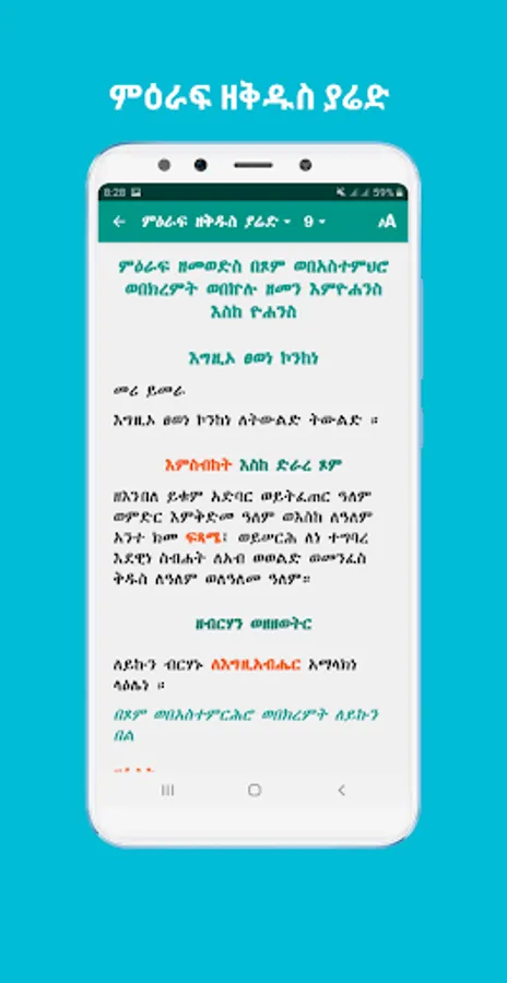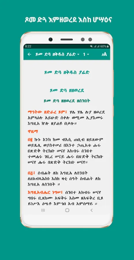 • የማኅሌት ክፍሎችንና መጻሕፍትን